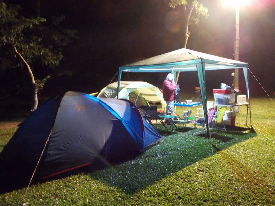 Chegamos no camping já bem escuro e estava tudo apagado, como da última vez abri a porteira entrei acendi as luzes e fui montar a barraca. Só tinha uma turminha acampando bem na ponta do camping mas já estavam dormindo. Como marca registrada dessa época do ano estava bem frio, do jeitinho que eu queria.